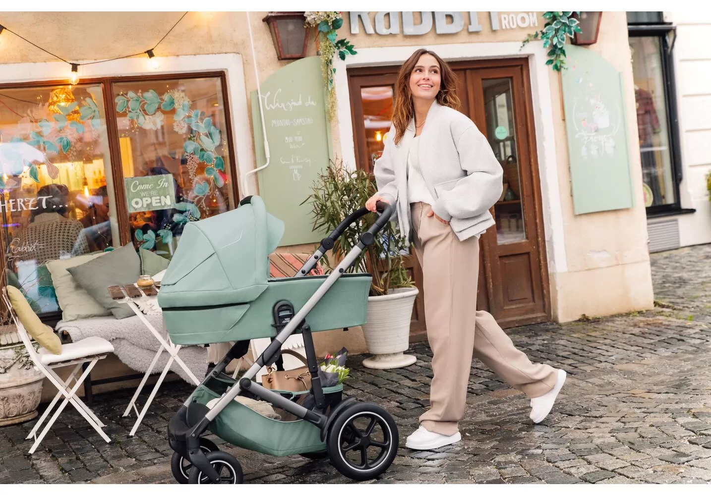• Úzká konstrukce kočárku (57 cm)